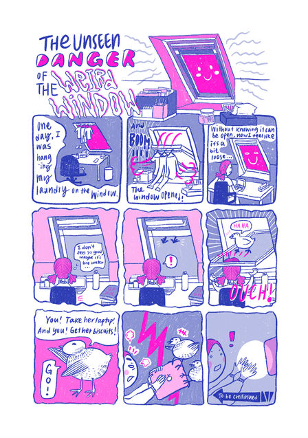 Guess I’ll Die is an anthology by 9 artists from all around the world who lived in the UK for a few months. Together, they share their unique perspectives on the unfamiliarity they experienced on a normal day in the UK. To cope with the strangeness in this new environment, the artists often find themselves expressing their frustration with humour.